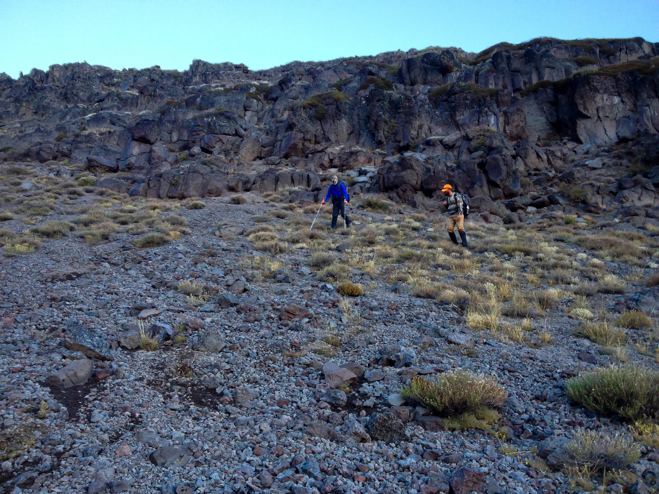We boned the meat out and made our way back to camp, stopping occassionally to catch our breathe and look back at the mountain we had descended. My sherpas did a great job, but I still beared much weight!